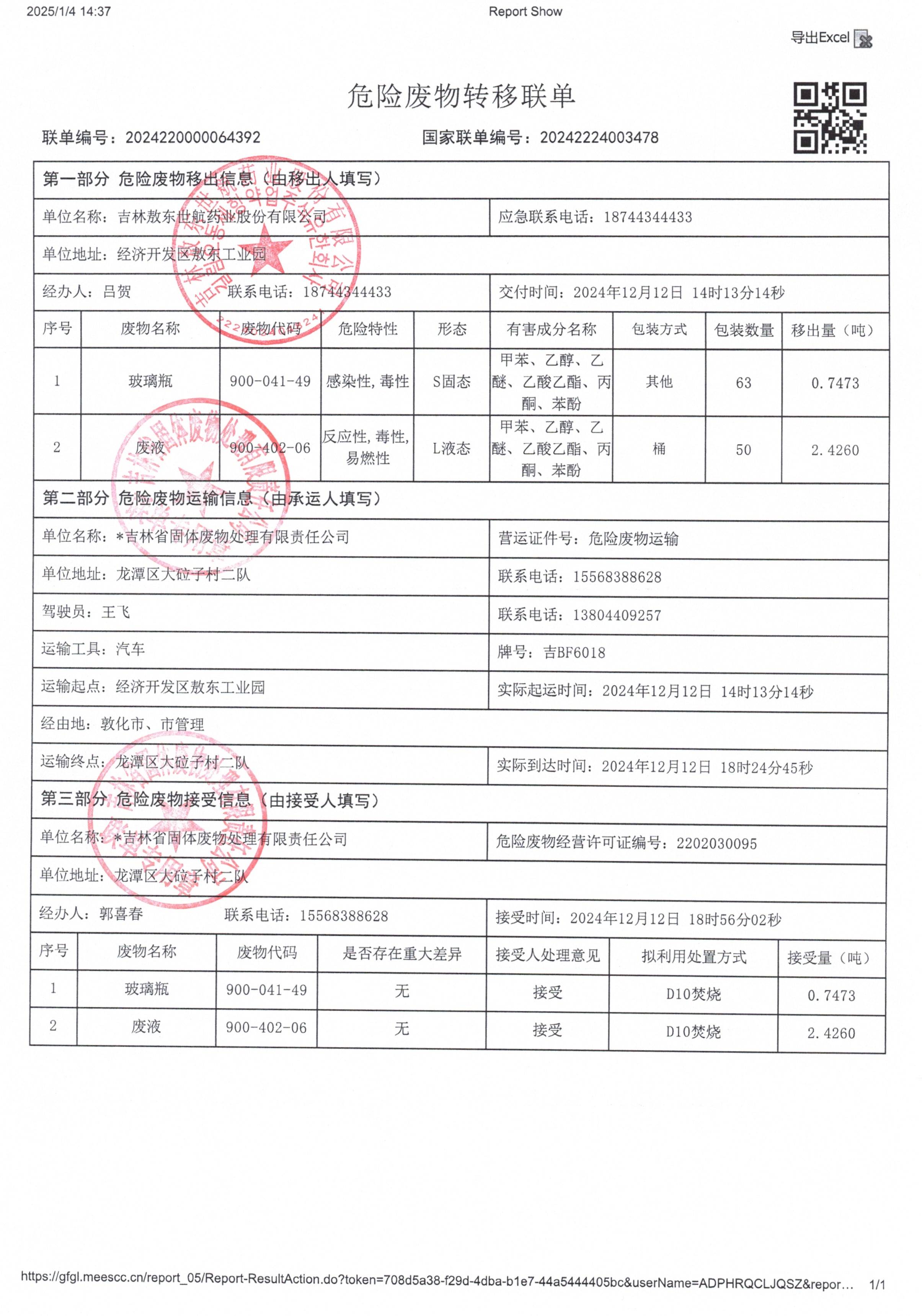 2024年危險廢物轉(zhuǎn)移聯(lián)單